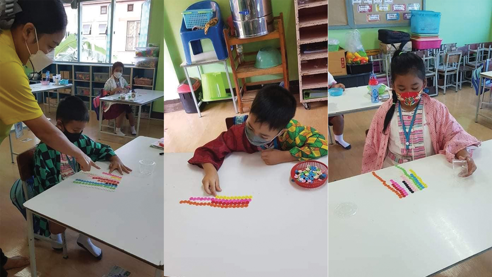 กิจกรรมเรียกสมาธิ ฝึกสมองยามเช้า เรียงกระดุมแยกสี และนับจำนวนกระดุม เมื่อได้ทำบ่อยๆเด็กๆจะมีทักษะการจำแนกสีต่างๆและการนับจำนวนที่แม่นยำมากยิ่งขึ้นค่ะ